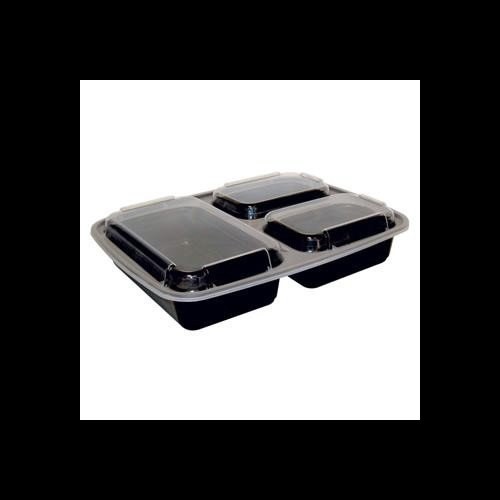Karat round and rectangular black, PP injection molded containers and lids are great for takeout and leftovers. These containers are available in multiple sizes, and with multiple compartments. Containers are microwavable and dishwasher safe.